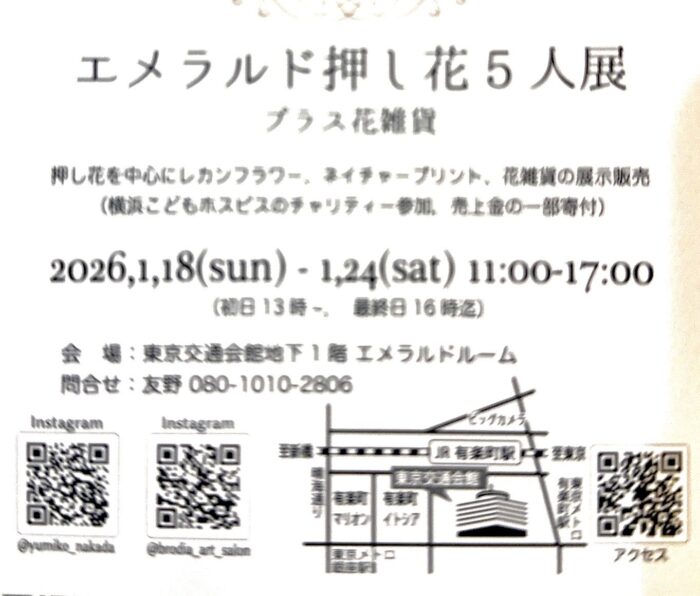 押し花展示会を開催します。〈エメラルド押し花5人展〉